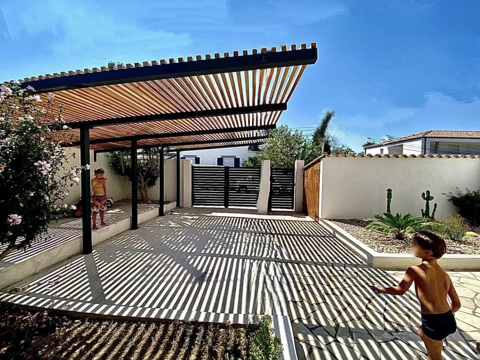 Chez FIMSAI, nous sommes fiers de vous présenter le projet d'une pergola (ou carport) sur mesure exceptionnel situé sur la commune de Martigues. Ce projet se distingue par sa partie aérienne réalisée à partir de profilés très imposants et une architecture complexe. Pour couronner le tout, cette structure a été dotée d'une couverture en tasseaux de bois massif, alliant esthétique et fonctionnalité.